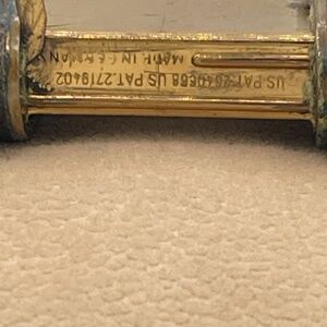 The Vintage 1950s Shields Fifth Avenue N.Y Brown Leather, Blue Strap, Brass purse watch is a luxurious timepiece designed for women. This stylish watch features a brown leather sliding outside case and button, with a blue fabric strap, complementing the brass case material. The vintage design of this watch adds a touch of nostalgia to any outfit, making it a unique and classic accessory for any jewelry collection.