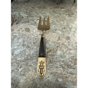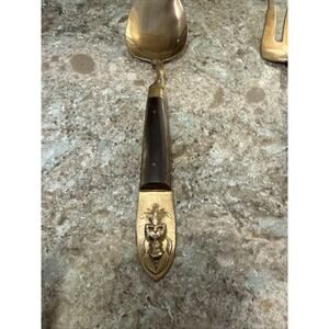 Vintage 1950’s Siam Thailand Mid Century Bronze And Wood Serving Fork & Spoon