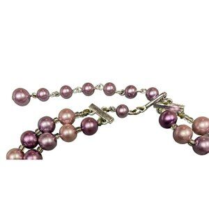 This vintage signed Japan 1950s necklace features two strands of lustrous purple and pink beads. Ideal for adding a touch of retro glamour to your outfit.