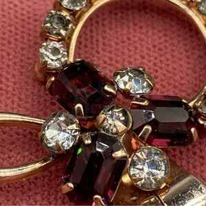 Stunning red garnet crystal baguette rhinestones and prong set clear sparkly rhinestones (some have darkened due to age)