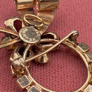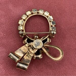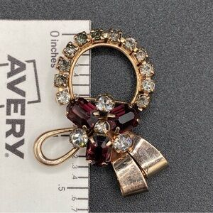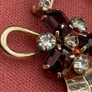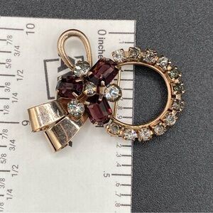 Vintage 1950s Signed M&S 12k G.F. Gold Bow Wreath Brooch with Sparkly Red Crysta