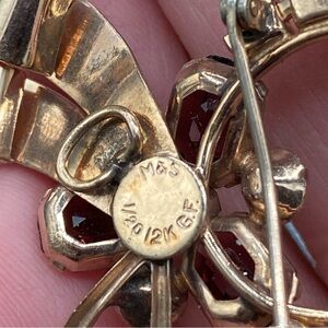 M&S Manufacturing Company was a mid-20th-century American jewelry company from Rhode Island that produced gold-filled and fine costume jewelry. The “12K GF” marking indicates the brooch is 12-karat gold-filled, a durable and high-quality finish common in vintage jewelry. M&S is appreciated for its elegant designs and craftsmanship, often featuring classic motifs and timeless styles. While not as widely recognized as major brands like Coro or Trifari, M&S pieces are still highly collectible and rare to find.
