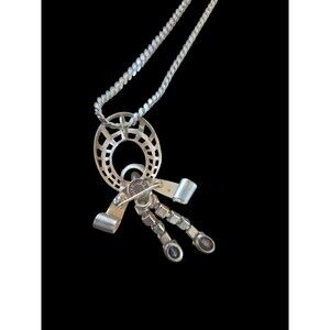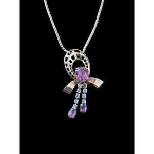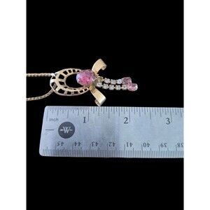 Vintage 1950s Signed SCITARELLI Pink & Crystal Rhinestone Bow Pendant Necklace