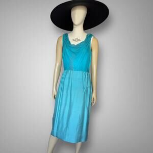 Vintage 1950s Silk Shantung Dress and Jacket Set Blue Green Georgette Trilère