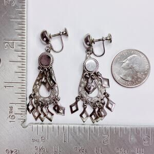 Vintage 1950s Silver Tone Filigree Chandelier Screw Back Earrings Mid Century