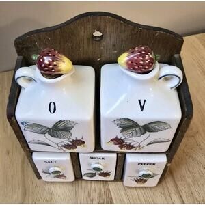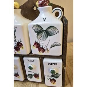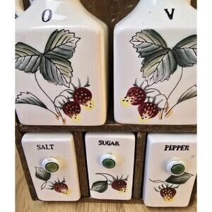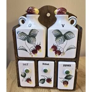 Vintage 1950s Spice Set Oil Vinegar Sugar Salt Pepper Kitchen Country Strawberry