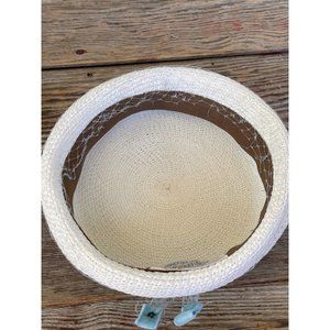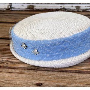 Vintage 1950s Straw Pill Box Hat Whit Rhinestone Bees Bugs