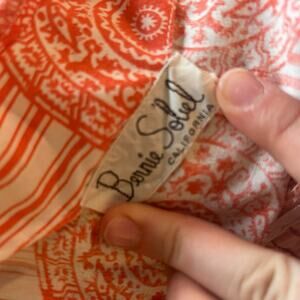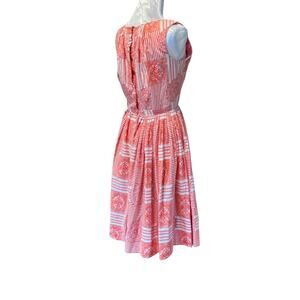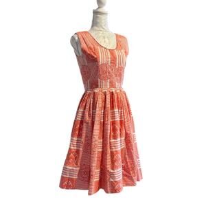 Vintage 1950s Sundress Sz Small Bernie Sobel Orange White Geometric Pleated