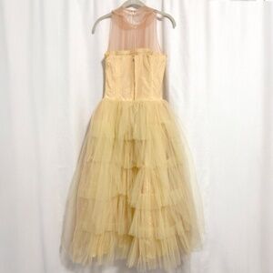 Vintage 1950s Sylvia Ann Bridal Fit & Flare Pale Yellow and Peach Tulle Dress