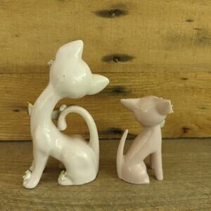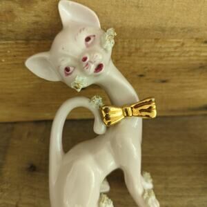 Vintage 1950s Thames Ceramic Spaghetti Cats Figurines Rhinestone Eyes Gold Bows