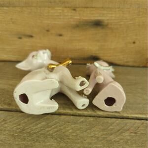 These are in excellent condition. No chips, cracks or breaks. No repairs and no crazing. Spaghetti is still intact with no chips. The small one has rhinestone eyes. They are absolutely adorable!