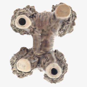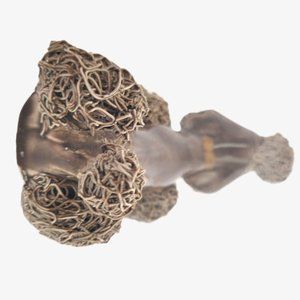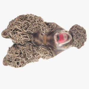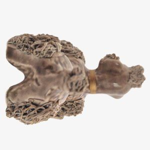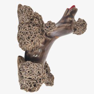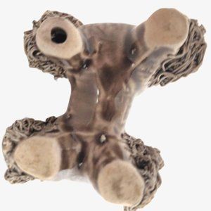 Extra cute & kitsch poodle dog family w brown taupe body and spaghetti porcelain fur dusted w gold. Puppies are a lighter taupe brown. Gold gilded collar around each neck except scratching puppy.