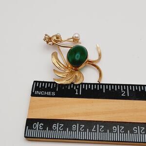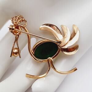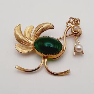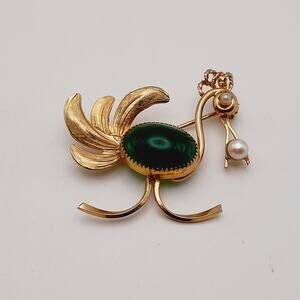 Vintage 1950s Unsigned Princess Pride Creation Bird Pearl Green Glass Brooch