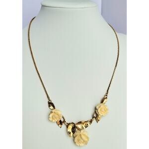 Vintage 1950s Van Dell Designer 12k Gold Filled Ivory Rose Necklace