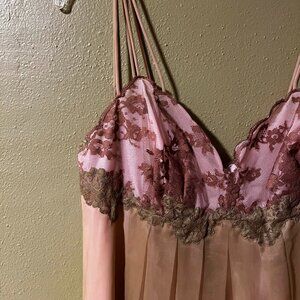 Style: Sleeveless lace-trimmed nightgown with matching short-sleeve robe