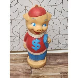 Vintage 1950s Vinyl Porky Pig Toy Piggy Bank Rare Soft Plastic Rubber Hat & Book