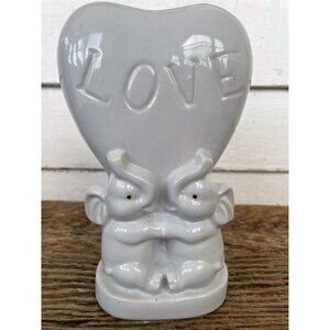 Vintage 1950s White Porcelain Elephant Heart Love Vase Planter