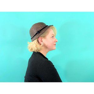 Vintage 1950s Wicker Hat Small Brim Straw Cap