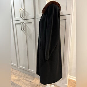 Excellent Preowned Condition with no signs of wear or flaws. No tags other than what I believe is an old hand-written dry cleaning tag. Fully lined dress coat made of natural fiber-wool is my best guess. I believe the fur collar is mink, but I am not an expert! However, it is definitely real fur.