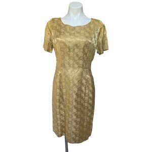 Vintage 1950s Women's Dress Set Gold Brocade Satin Roses 2 Piece Medium