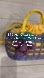 Rare! 1950s Charming woven lavender basket bag with yellow and purple accents. Features unique raffia grape embellishments. I-have never seen another bag like this and after doing research, I cant find another.