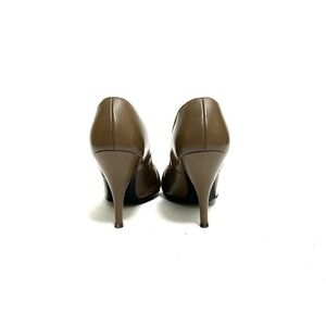 Vintage 1950s brown leather pointed toe black stripe slip on pumps