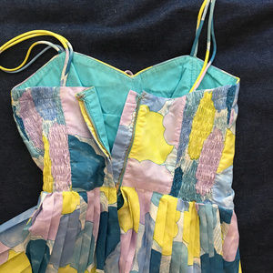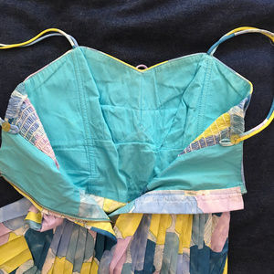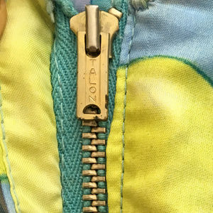 Rare 1950’s bathing dress with bloomer shorts inside! This dress/ jumper is perfect for prancing around in the summer. Abstract cloud print