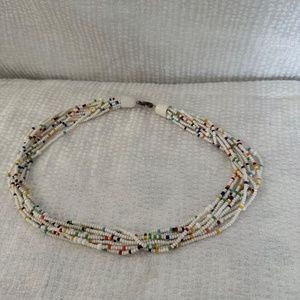 Vintage 1950’s, seed bead Necklace in white with multicolor beads, 10 strands, 18” long,in very good condition.
