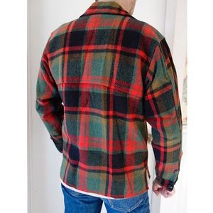 Vintage 1950's Johnson Hunting Woolen Mills Red Green Wool Plaid Coat Jacket.