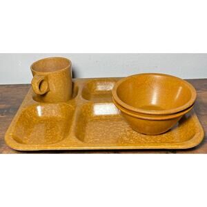 Vintage 1950s/1960s US Military Melamine Mess Set- Divided Tray, 2 Bowls, Mug