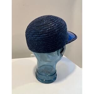 Vintage 1950s-60s Straw Visor Sun Hat Blue JL