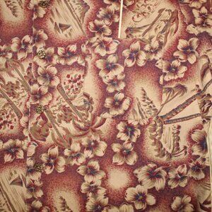This is a vintage 1950’s-60’s Hawaiian aloha shirt manufactured for Fredrick & Nelson Men’s Shop in Seattle that has all the design characteristics of being made in the 1960’s by Duke of Hollywood under the Waikiki Wear label. (see my shop for this Waikiki Wear by Duke of Hollywood shirt). This Fredrick & Nelson aloha shirt has a gorgeous design pattern of Hawaiian scenes depicting Waikiki surrounded by hibiscus and plumeria flower leis. The alluring scenes show the relaxing beauty of Waikiki’s famous Diamond Head overlooking swaying palm trees, sailboats, and surf riders. This is a rare Hawaiian shirt that comes with two fabric matching chest pockets and cuffed sleeves. The shirt has bronze “lava-styled” metal buttons that compliments the design pattern, horizontal buttonholes, and a coordinating collar button loop. This clean shirt is 100% cotton and is a size Large (L) as indicated on the label, but please be sure to review the shirt’s measurements in the photo provided. Mahalo, -Malibu Mike