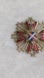 The Maltese brooch features a heraldic shield in the center and has a sunburst motif. It is beautifully decorated with red, blue and white enamels.