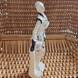 Vintage 1950's Wales Porcelain Figurine 8" Tall Victorian Gold Trim