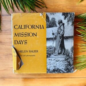 Explore California’s rich mission history with this 1951 hardcover edition of California Mission Days by Helen Bauer. Featuring over 60 black-and-white photographs—many rarely seen—this book details the development of California’s 21 missions, with chapters devoted to each one. It covers the life and travels of Father Junipero Serra, mission construction, Indigenous labor, and the role of the missions in early California.