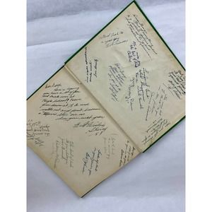 Full of sweet notes from classmates, neat advertisements, and great pictures illustrating the typical life of a California teenager post World War 2. A commencement from that years graduation and a souvenir football program were preserved in the pages of this book. Minor wear from age on the corners and edges. Paper pamphlets are in good condition. Measures 10 3/4" by 8".