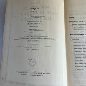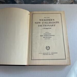 The product is a vintage 1951 Webster's New Collegiate Dictionary with indexed pages, bound in hardcover. Published by G. & C. Merriam Co., this original reference book features various authors and is in English. This collectible item from North America is a single unit manufactured in the United States, providing a valuable resource for language and dictionary enthusiasts.