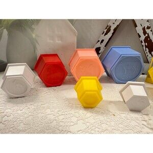 Vintage 1953 Child Guidance Nesting Hexagon Animal Blocks Complete W/Box & Book