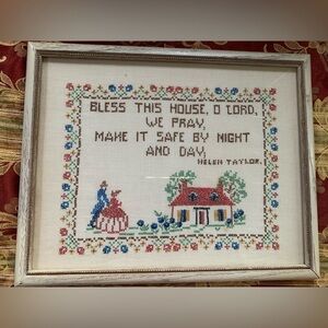 Vintage 1953 Framed Cross Stitch "Bless This Home" by Helen Taylor