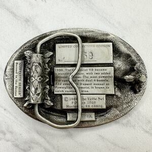 Authentic vintage 1984 Vette Set belt buckle featuring the iconic 1956 Corvette! Perfect for any car enthusiast or collector who wants to show their love for classic Corvettes! This commemorative piece showcases detailed graphics of the legendary first-generation Corvette with quality Made in USA construction.