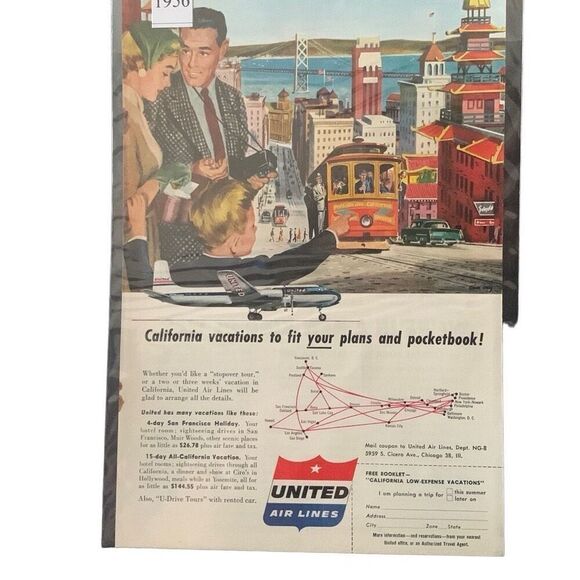 Vintage 1956 United Air Lines California Vacations Ad Advertisement
