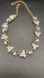 The design of the leaves is textured rhodium plated which gives the appearance of sparkly rhinestones but it is hammered pitted metal that looks luminous in the light. The links are a slight two tone contrast with gold-tone vines, stems, and tendrils. Each link measures approac 1.25 x 3/4in wide and the clasp is a hook clasp on a brassy, gold tone cable chain