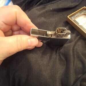 The product is a vintage 1959 slim Zippo lighter, personalized engraved with a chrome finish, package in its original box. This collectible item is a classic piece from the United States, known for its high-quality craftsmanship and durability. As a sought-after item in the tobacciana and lighter collectibles market, this Zippo lighter is sure to appeal to collectors and enthusiasts of vintage lighters.