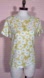 Adorable mid century modern tee shirt with a sweet daisy print. Retro colors of pale yellowy avocado green with cream daisy’s with sky blue middles. Slim streamline fit with cap sleeves. Printed fabric with minimal stretch.