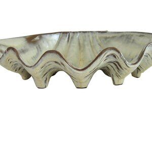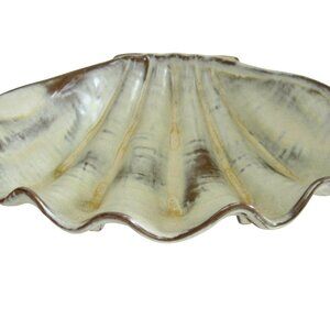 Vintage 1960s clam shell server in woodland moss, from Frankoma.