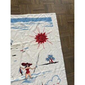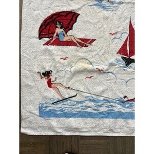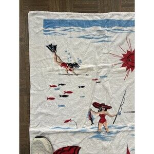 Vintage 1960 Large Cannon Beach Towel MCM Hot Woman Fun Risque Sand Sun Ski Sail