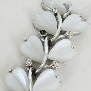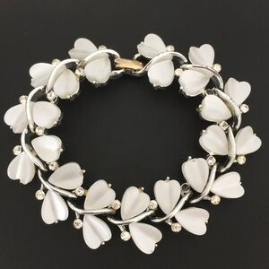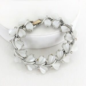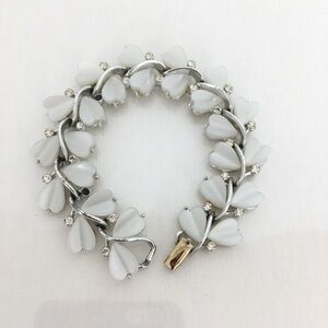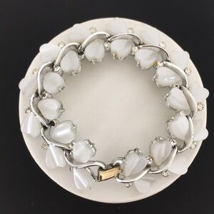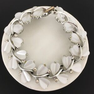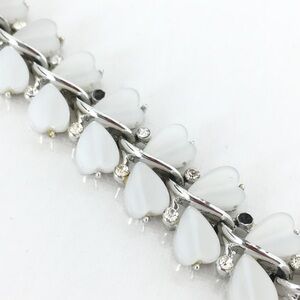 Vintage 1960 Signed Lisner Bracelet White Hearts Rhinestones Silver Tone Metal