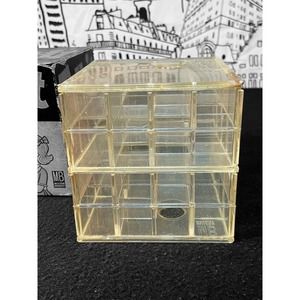 The acrylic is a little clouded and has a few cosmetic splits on top upper right corner and bottom right corner (see photos). There are two small cosmetic cracks on the left bottom side of the cube (see photos). There is some discoloration to the upper right corner of the cube (see photos).