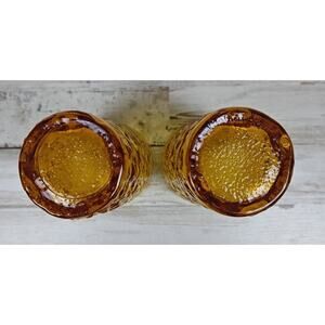 Vintage 1960s 1970s Anchor Hocking Lido Milano Amber Glass Tumblers Set of 2