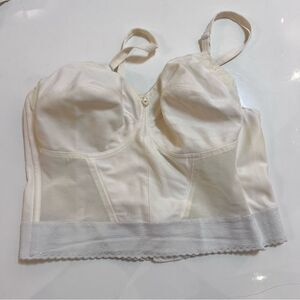Vintage 1960s / 1970s Bali Sky Bali Ivory Mesh Panel Long Line Soft Cup Bra Corset Bustier Lingerie